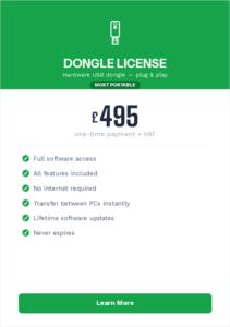 One-time payment for a lifetime Radio Depot licence secured by a physical USB dongle. The dongle is shipped to you — plug it into any Windows PC to run the software. Move freely between machines with no re-activation required.