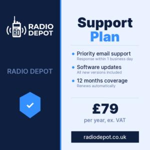 A one-time payment for a lifetime Radio Depot licence. No annual fees, no renewals — pay once and own it forever. Includes all future software updates and full access to every feature, locked to one PC.